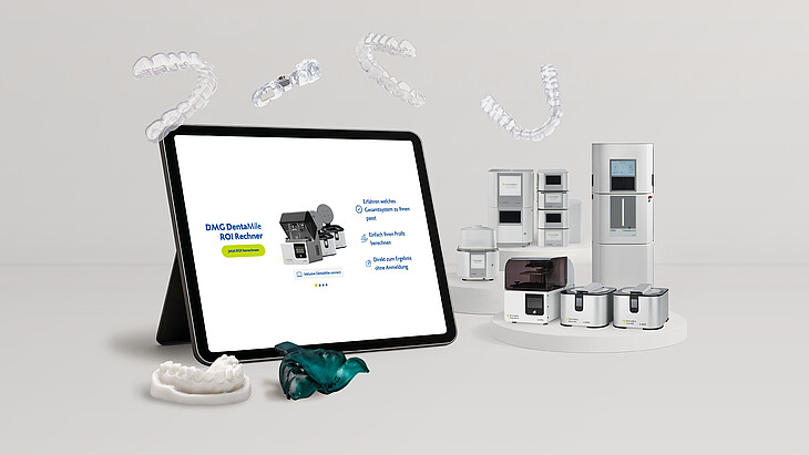 Welche Auslastung braucht Ihr 3D-Drucksystem, damit es sich wirtschaftlich rechnet? Der neue DMG DentaMile ROI Rechner macht aus Annahmen eine nachvollziehbare Kalkulation: Geben Sie Ihre typischen Anwendungen, Stückzahlen sowie Material- und Verkaufspreise ein und vergleichen Sie vier komplette 3D-Druck-Gesamtsysteme inklusive DentaMile connect: vom kompakten Praxis-Setup bis zur skalierbaren Laborlösung. In drei Schritten erhalten Sie eine Empfehlung und Kennzahlen wie Break-even, Amortisationszeit sowie einen transparenten Kosten-Nutzen-Check. Testen Sie unterschiedliche Szenarien und sehen Sie sofort, wie sich jede Stellschraube auf das Ergebnis auswirkt. Und das alles kostenfrei, ohne Anmeldung, direkt online.
