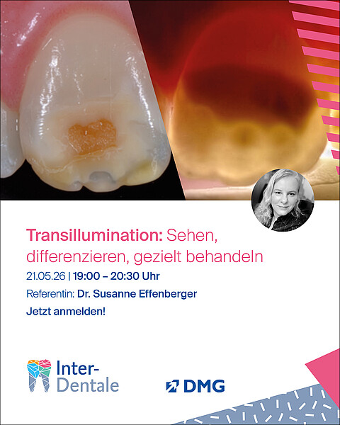 In unserem nächsten Interdentale Webinar am 21. Mai 2026 vermittelt Dr. Susanne Effenberger die Grundlagen der Transillumination, deren klinische Anwendung sowie ihre Bedeutung als zentraler Schritt in der Behandlungsplanung.